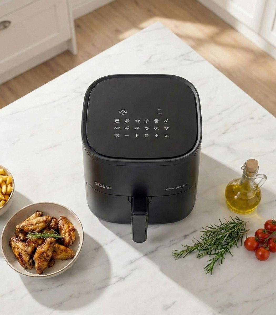 Friteuse à Air électrique solac 5L en 5 litres est un format très équilibré : il convient à la plupart des foyers, tout en restant facile à ranger. Cette capacité est utile pour :