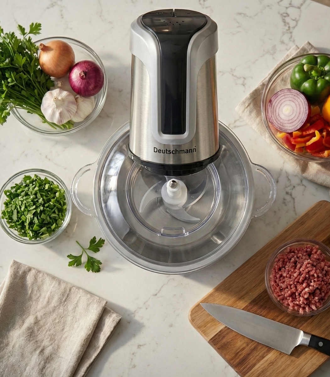 HACHOIR DIGITAL MULTIFONCTIONS Deutschmann est pensé pour un usage polyvalent “multi-ingrédients”. Dans la pratique, vous pouvez l’utiliser pour hacher de la viande, émincer et hacher des légumes, ciseler des herbes, préparer des condiments, mixer des bases de sauces, ou encore réaliser des mélanges plus fins pour des textures type purée de légumes, tapenades ou préparations à tartiner. Cette polyvalence vous évite d’utiliser plusieurs outils (couteau, planche, mini-mixeur) et améliore la régularité des résultats, surtout quand vous recherchez une granulométrie précise.