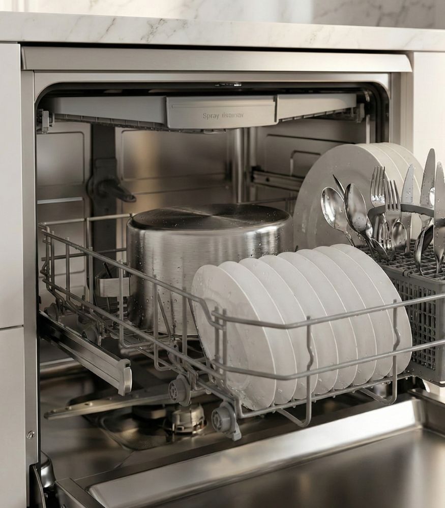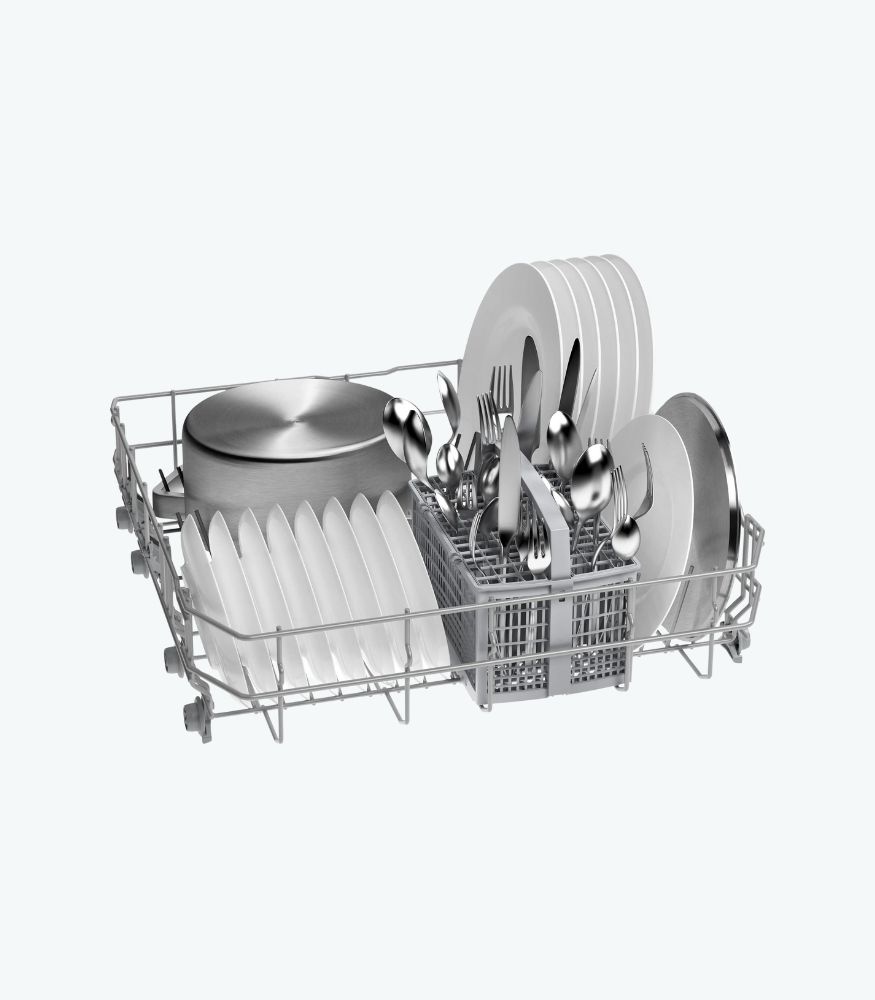 Panier à couverts et éléments rabattables pour optimiser le chargement.