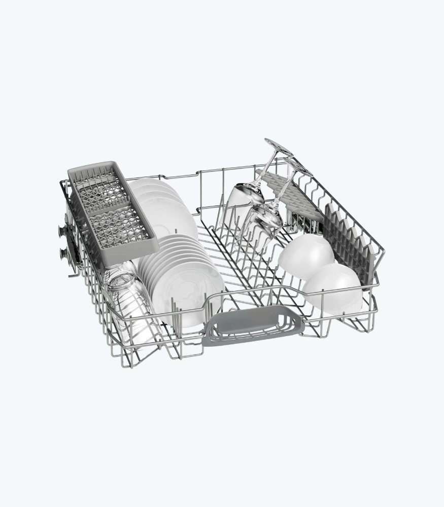 Panier à couverts + rack à couverts et étagères tasses pour une meilleure organisation.