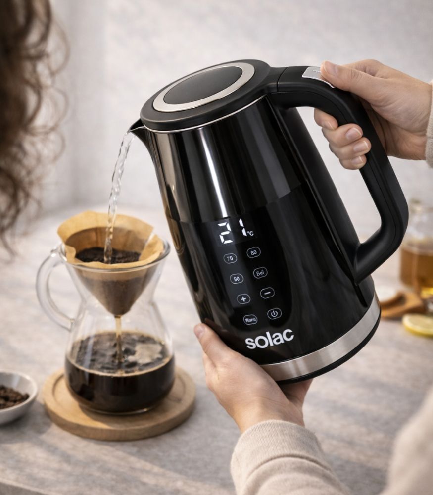 BOUILLOIRE TORRENT INOX DIGITAL SOLAC est une bouilloire conçue pour ceux qui recherchent un appareil plus complet qu’un modèle basique, avec une combinaison très demandée sur le marché : inox, contrôle digital et fonction maintien au chaud. Dans une cuisine marocaine, l’eau chaude est utilisée en continu, notamment pour le thé, les infusions, le café et certaines préparations culinaires. Le vrai besoin n’est pas seulement de faire bouillir l’eau, mais de le faire rapidement, proprement, avec une utilisation confortable et un bon niveau de contrôle. C’est précisément la promesse de cette bouilloire Solac Torrent.