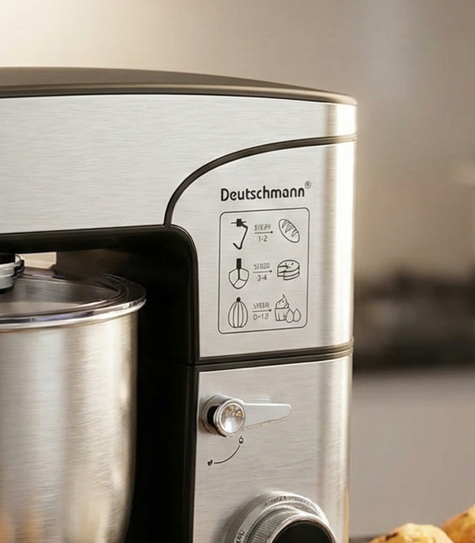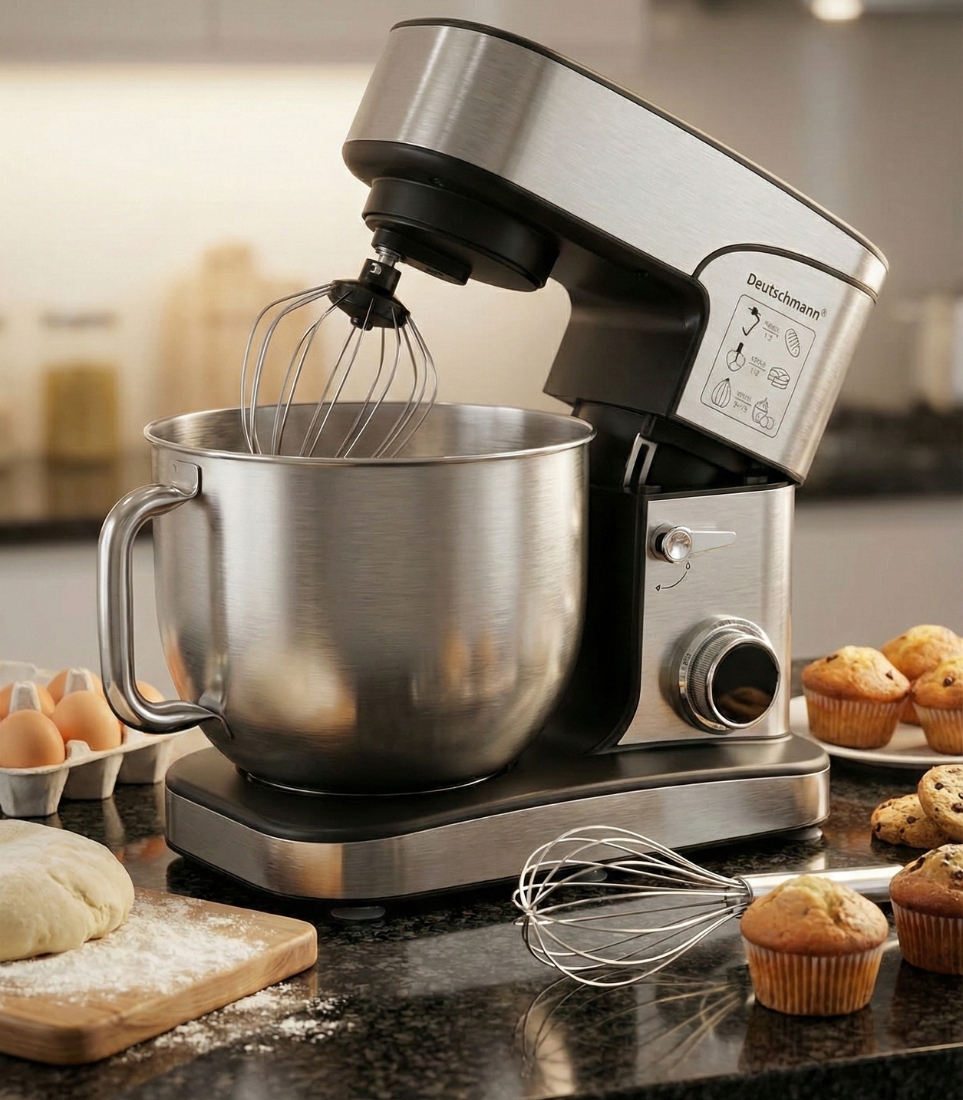 PÉTRIN PROFESSIONNEL Deutschmann 16L DM-2716SS 3500W est un pétrin grand format conçu pour les utilisateurs qui recherchent puissance, capacité et polyvalence dans un seul appareil. Avec un bol de 16 litres et 6 vitesses, il s’adresse aux familles qui cuisinent beaucoup, aux passionnés de pâtisserie, ainsi qu’aux usages intensifs (préparations répétées, grandes quantités, pâtes exigeantes). Son positionnement est simple : travailler plus vite, plus proprement et plus régulièrement, tout en réduisant l’effort manuel.