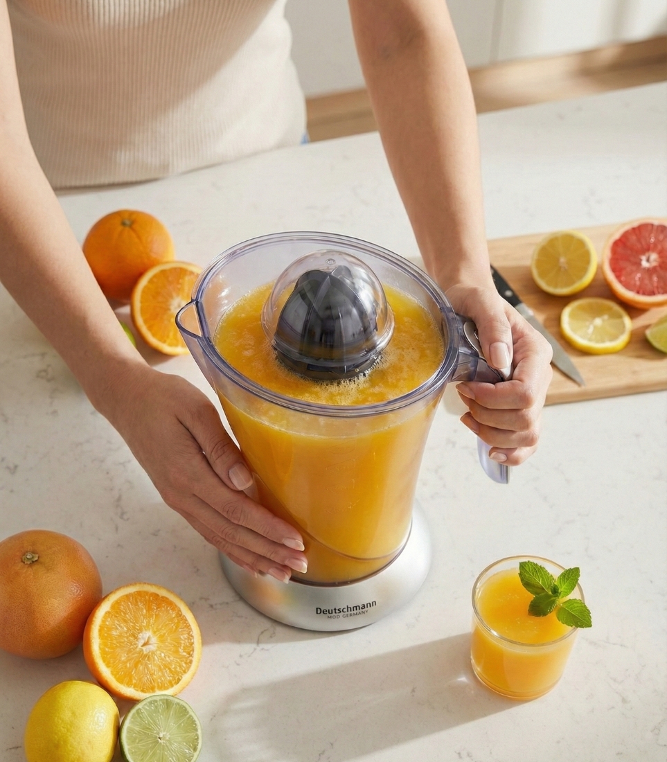 Presse Agrumes Electrique Deutschmann 80w répond à cette demande de praticité : un appareil qu’on peut sortir, utiliser, nettoyer, puis ranger sans effort.