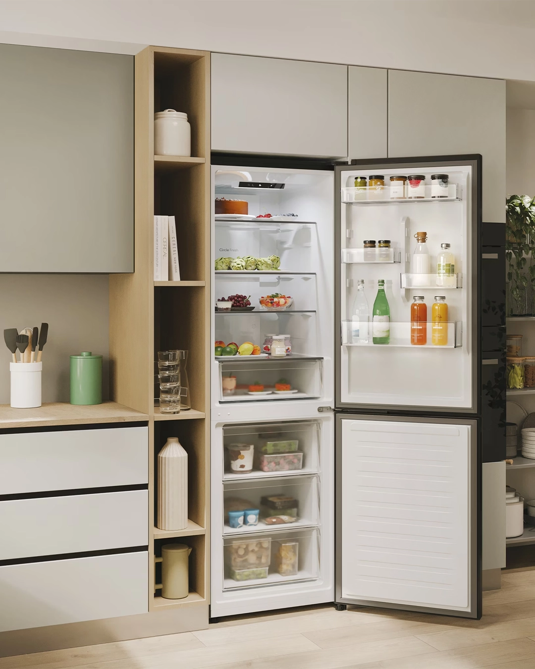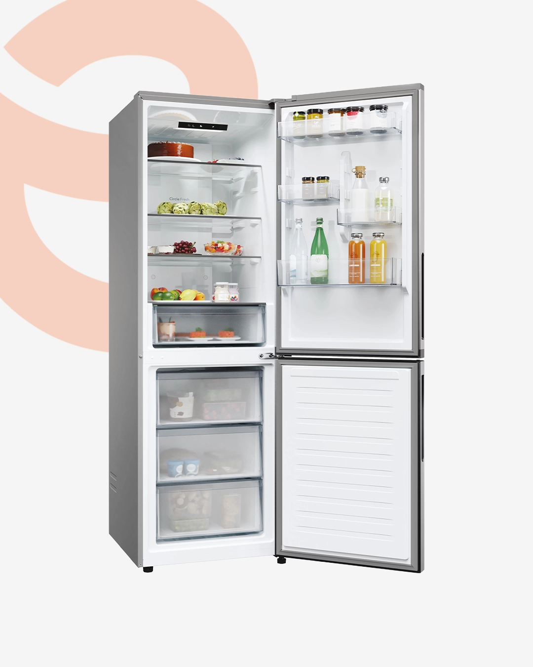 Ce modèle convient au stockage des boissons, produits frais, légumes, produits laitiers, viandes et surgelés selon son volume utile. Son format réfrigérateur combiné facilite l’organisation intérieure et répond à une logique d’usage domestique claire.