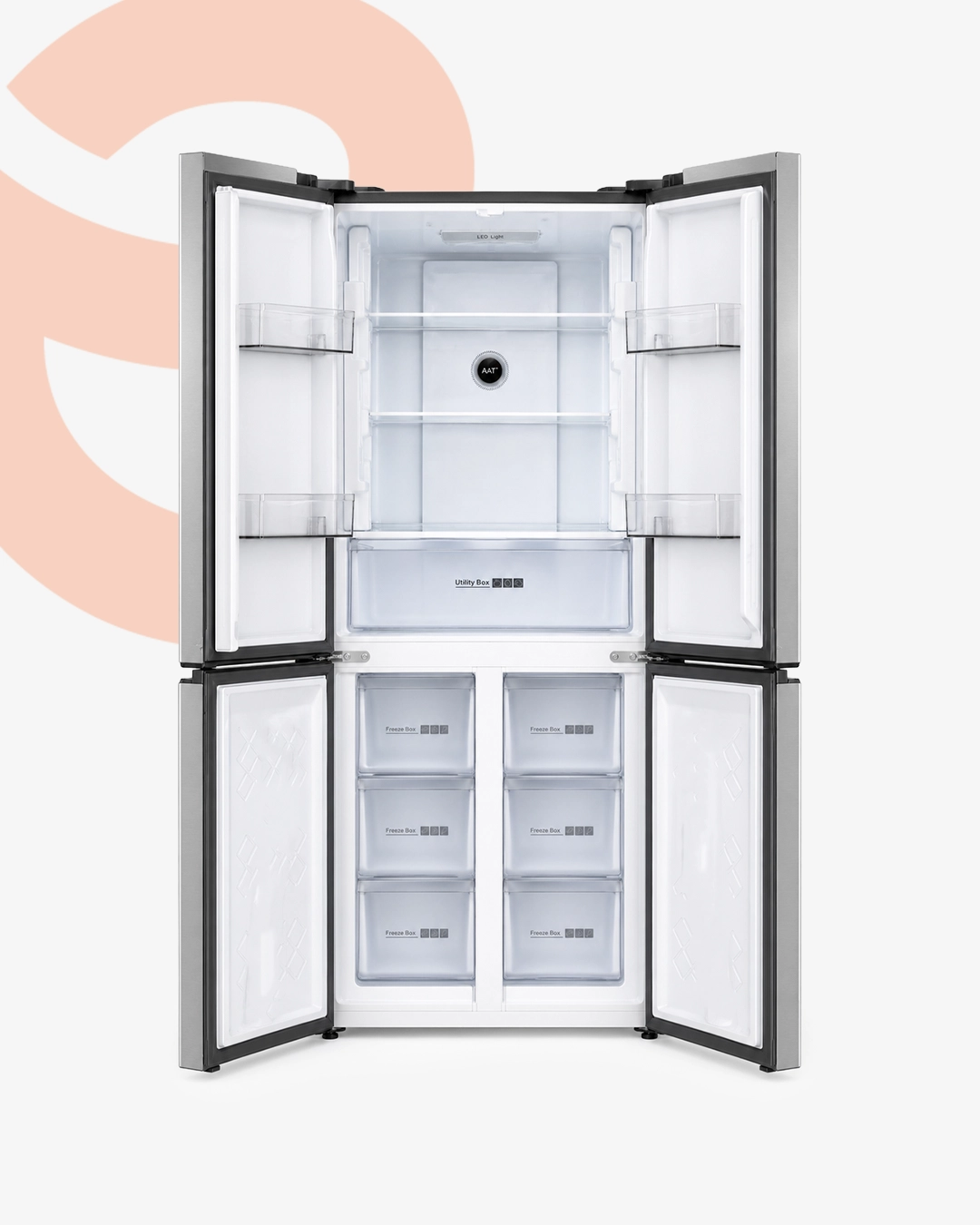 Ce modèle convient au stockage des boissons, produits frais, légumes, produits laitiers, viandes et surgelés selon son volume utile. Son format réfrigérateur 4 portes facilite l’organisation intérieure et répond à une logique d’usage domestique claire.
