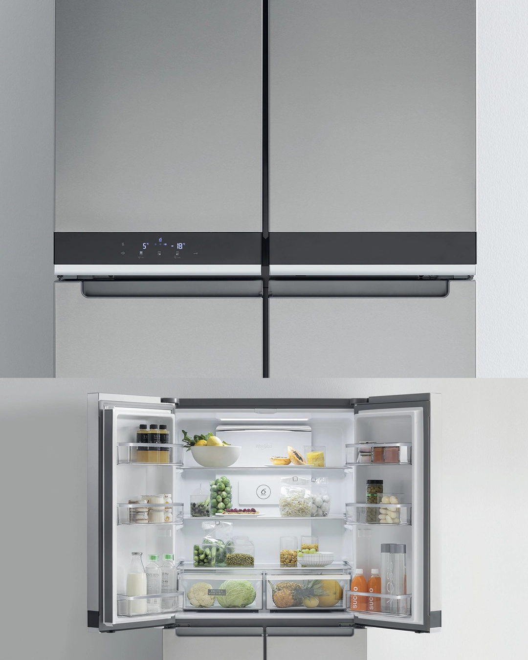 Le Réfrigérateur Whirlpool multiportes 591L WQ9B1L No Frost se distingue par son format multiportes, sa capacité de 591 L et sa finition inox.